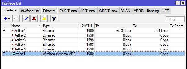 4. Ubah ether1 menjadi ether1-INET, klik Apply kemudian Ok.